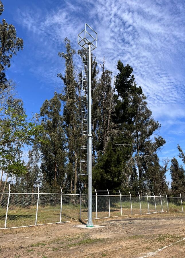 Este proyecto consistió en la fabricación de 4 torres de iluminación deportiva de alta resistencia, diseñadas especialmente para un complejo deportivo en la comuna de Casa Blanca. Cada torre cuenta con una escalera de acceso y un canasto de mantención superior, permitiendo un mantenimiento seguro y eficiente.